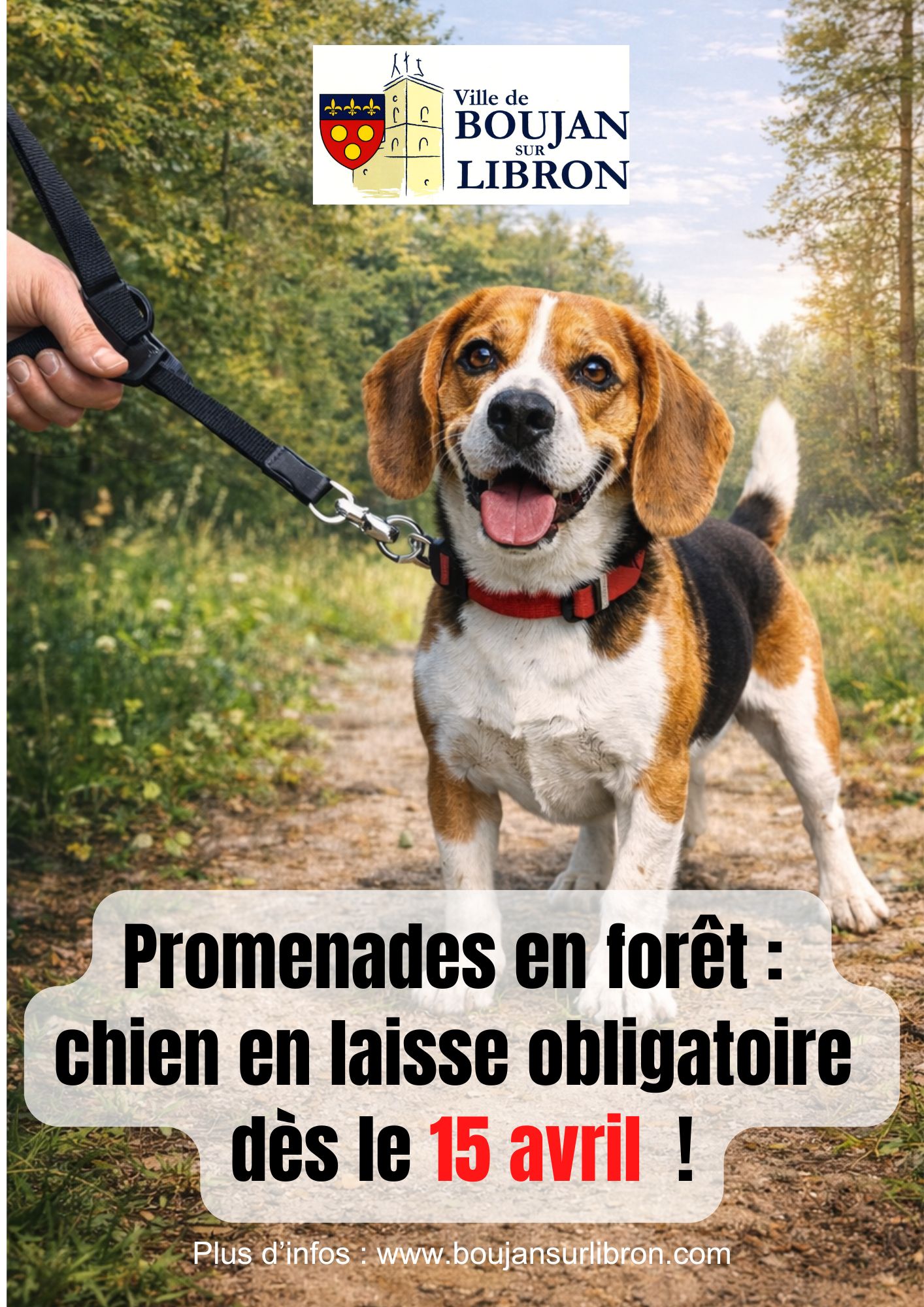 À partir du 15 avril, il est obligatoire de tenir son chien en laisse en forêt et dans les espaces naturels. Cette règle vise à protéger la faune sauvage pendant une période sensible (reproduction, naissances…).